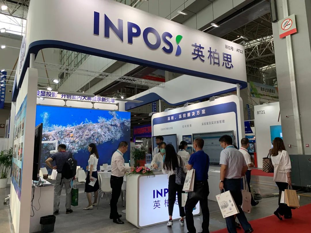 展會現場英柏思以玻顯投影為載體,展示了適合高職高校的教學信息化解決方案。