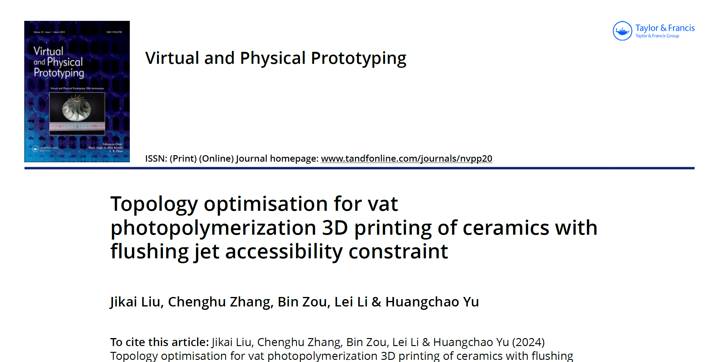 此前,山東大學(xué)聯(lián)和國(guó)防科技大學(xué)在《VirtualandPhysicalPrototyping》(IF10.2)發(fā)表了題為“Topologyoptimisationforvatphotopolymerization3Dprintingofceramicswithflushingjetaccessibilityconstraint”的研究,提供了一種專(zhuān)用于光固化陶瓷3D打印的晶格-固體混合結(jié)構(gòu)的多尺度